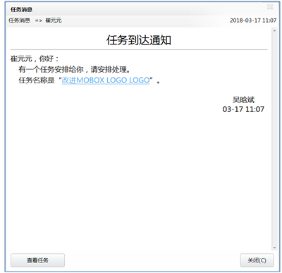 任務(wù)創(chuàng)建后系統(tǒng)把任務(wù)到達通知執(zhí)行人,如果你安裝過AM系統(tǒng),AM系統(tǒng)會在第一時間給執(zhí)行人發(fā)一個任務(wù)到達消息,點開AM消息即可查看任務(wù),并確認(rèn)是否執(zhí)行,具體操作如下: