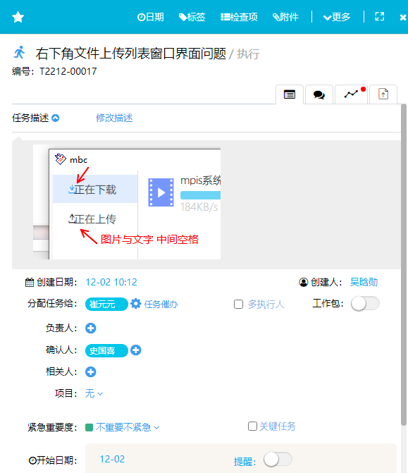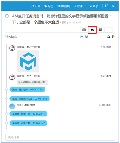 點上圖中的“”頁簽即可顯示任務(wù)的動態(tài)及交流頁面,如下圖所示: