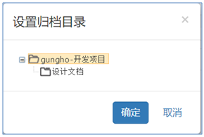 - 點擊上圖紅色框線區(qū)域的的“設(shè)置歸檔目錄”,系統(tǒng)彈出一個如下圖所示的項目文檔柜目錄選擇彈框。