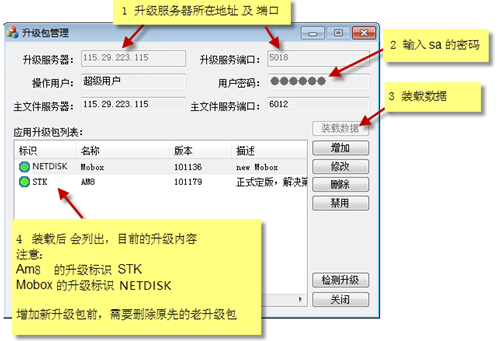 AM及Mobox客戶端可以實現在線自動升級。過程是,現在服務器端部署最新的升級包,AM或Mobox客戶端登錄的時候,能識別服務端已經有新的版本,進而提醒客戶端進行升級。以下是服務端配置最新升級包的方法