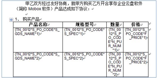 其中,購買產品是一個采購清單,屬于合同的關聯表,其變量定義解釋