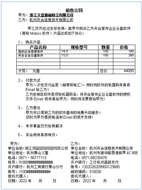 - 有開合信息公司的技術支持,幫助定義合同打印功能