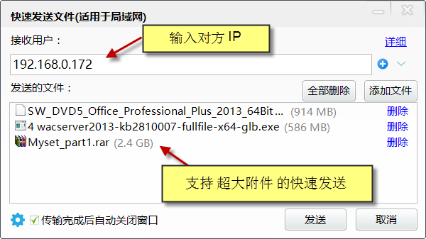 5、提供局域網內點對點文件傳輸功能(也可以用于共享文件)