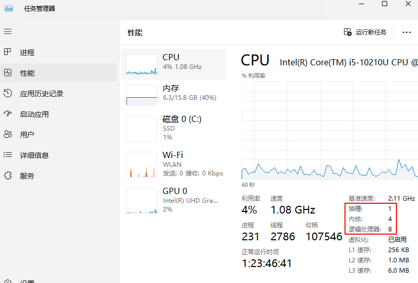 - 在該選項(xiàng)框中,即可看到CPU、GPU的核心數(shù)以及相關(guān)的信息。