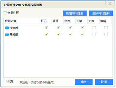 3)文件權(quán)限管理(權(quán)限包括:可見、展開、瀏覽、下載、上傳、編輯)