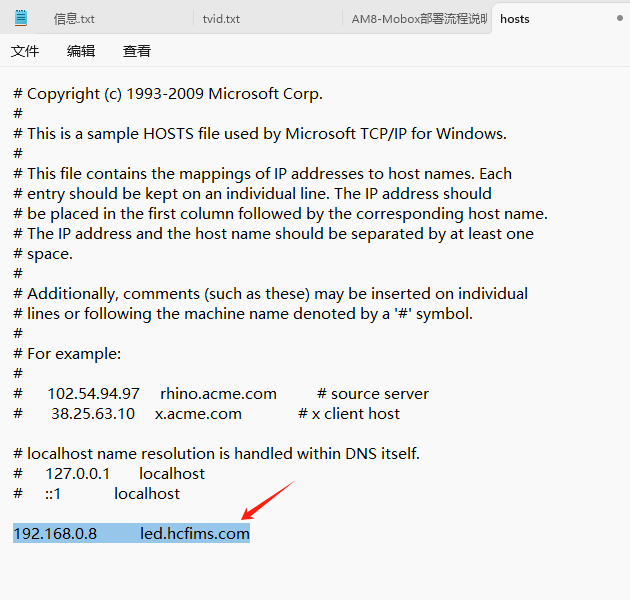 例如,如果你想將led.hzfims.com解析到192.168.0.8,你應(yīng)添加以下行:192.168.0.8 led.hzfims.com。