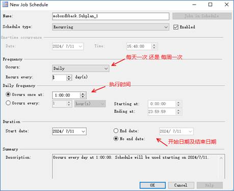 5、單擊“子計(jì)劃時間表”(日歷圖標(biāo))以設(shè)置SQLserver自動備份頻率