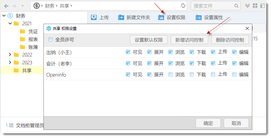 有上傳權(quán)限:員工可以向當前“目錄”上傳文件